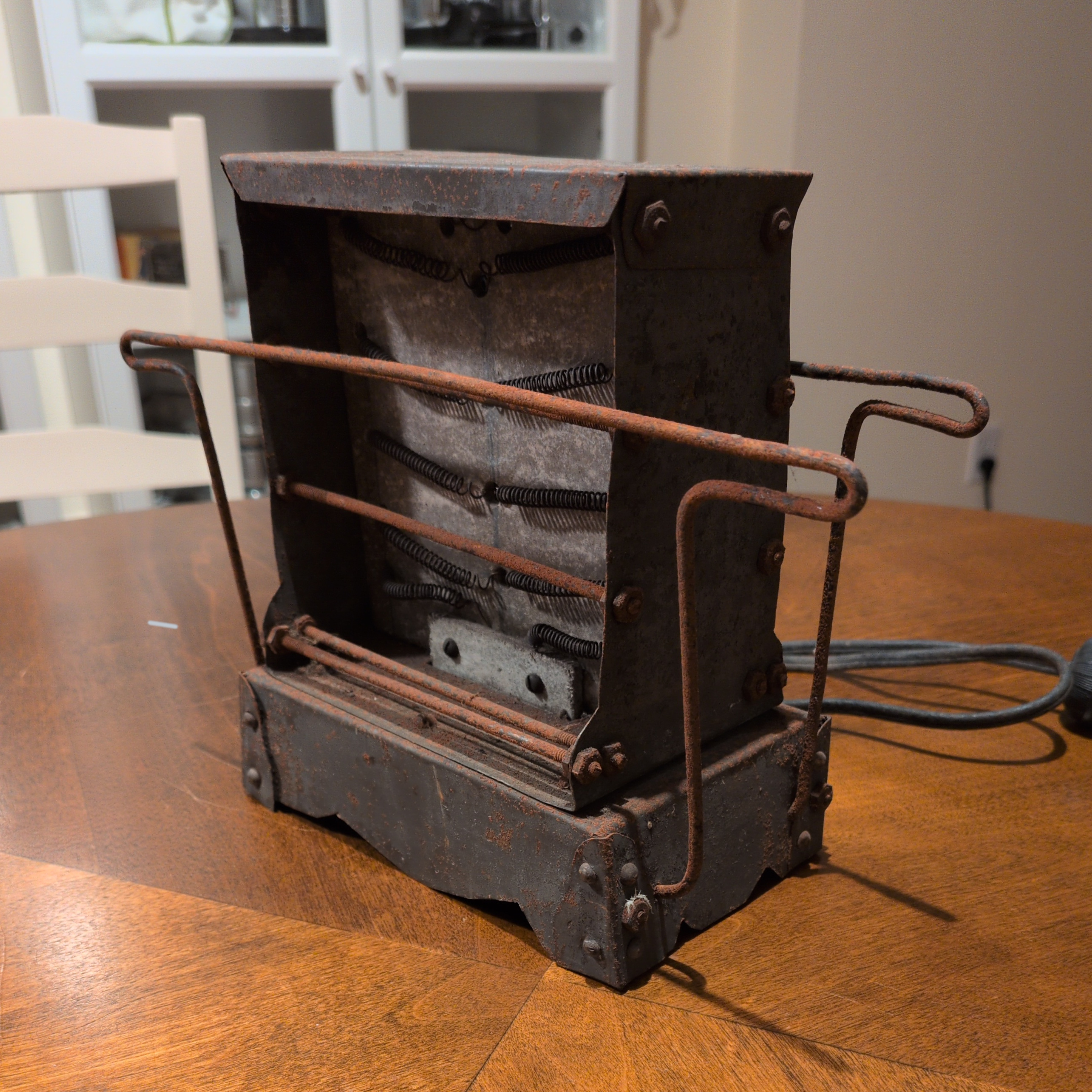This toaster was either a very rough, inexact unit straight from the manufacturer, and was hobbled along by the owner in ways I’ll outline below, or this toaster was made by hand.