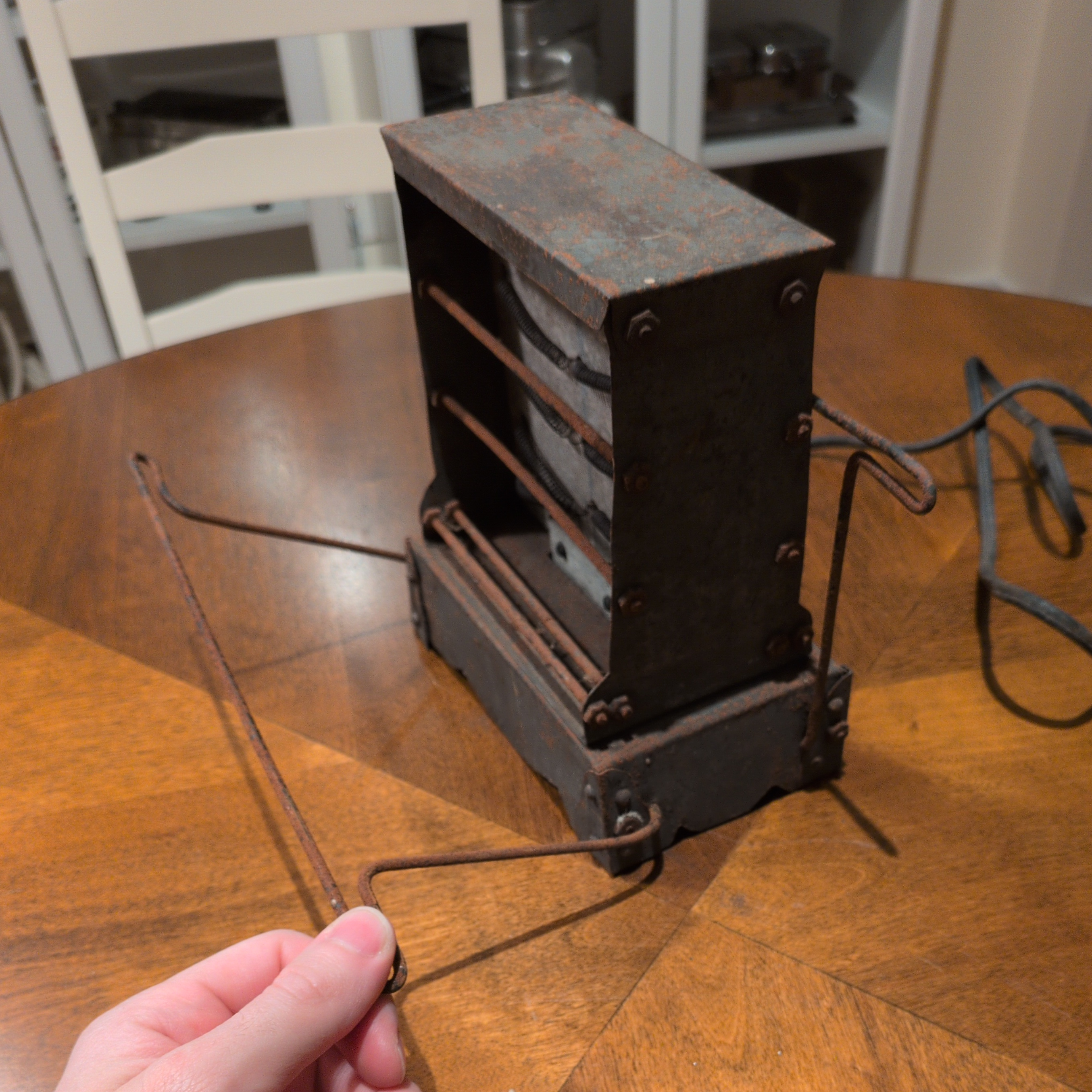 There are SO many things I love about toasters, but my absolute favorite is that occasionally you’ll come across specimens that were made in small volumes, like the Glorette, or perhaps one can find a particularly spartan toaster, like the Steelcraft, but very seldom can one point to an entire hand made specimen like this one potentially is. I also found it at a local antique store to boot!