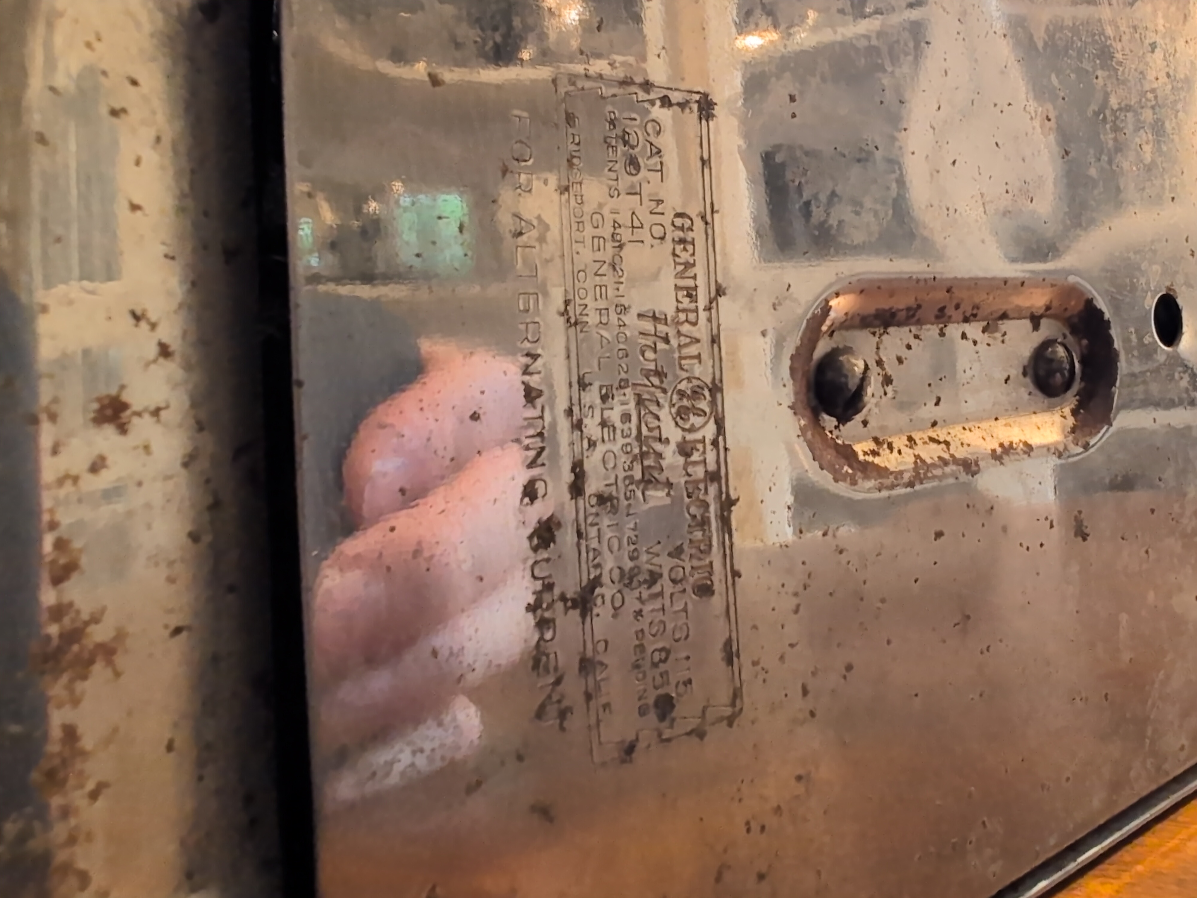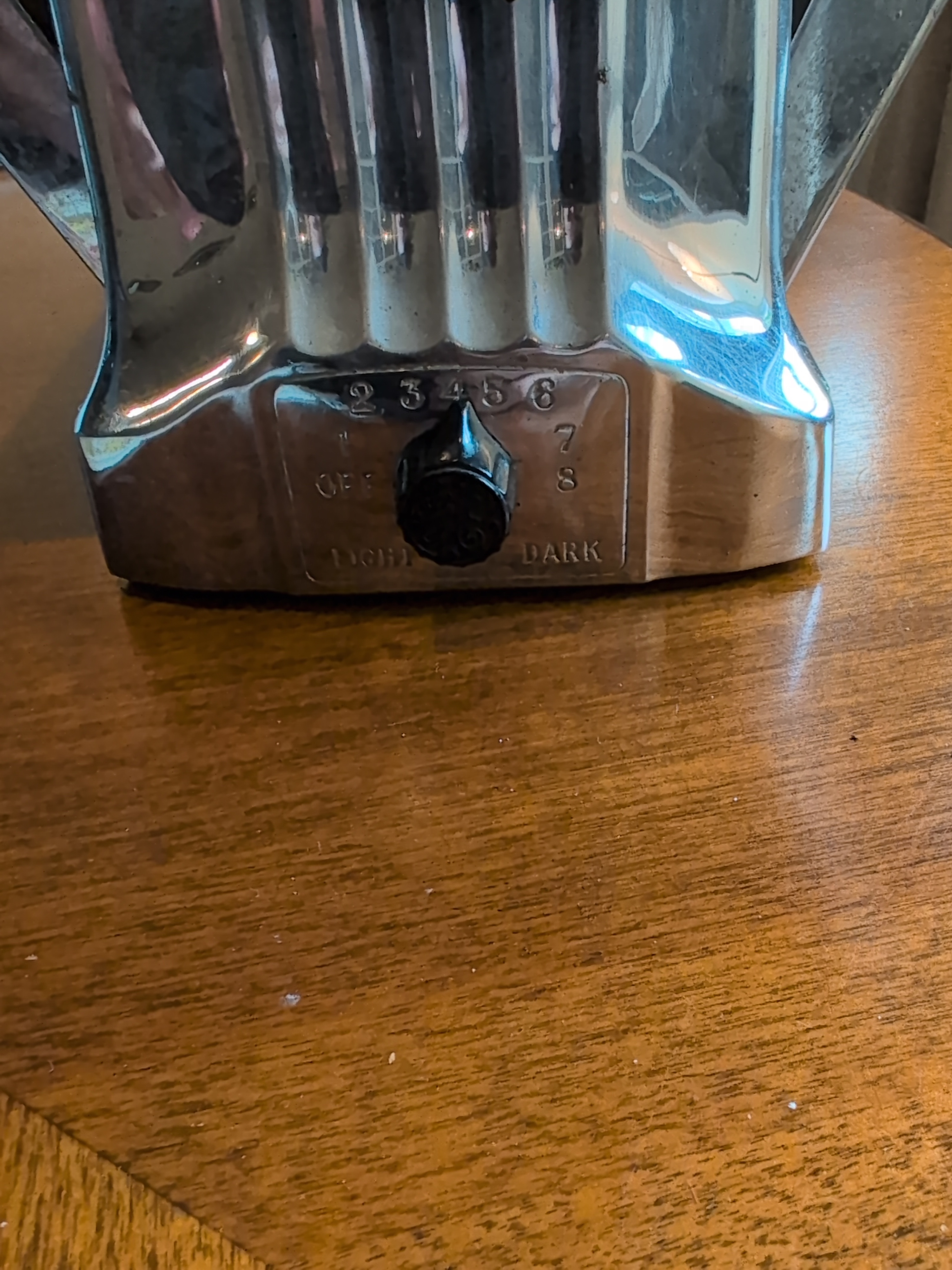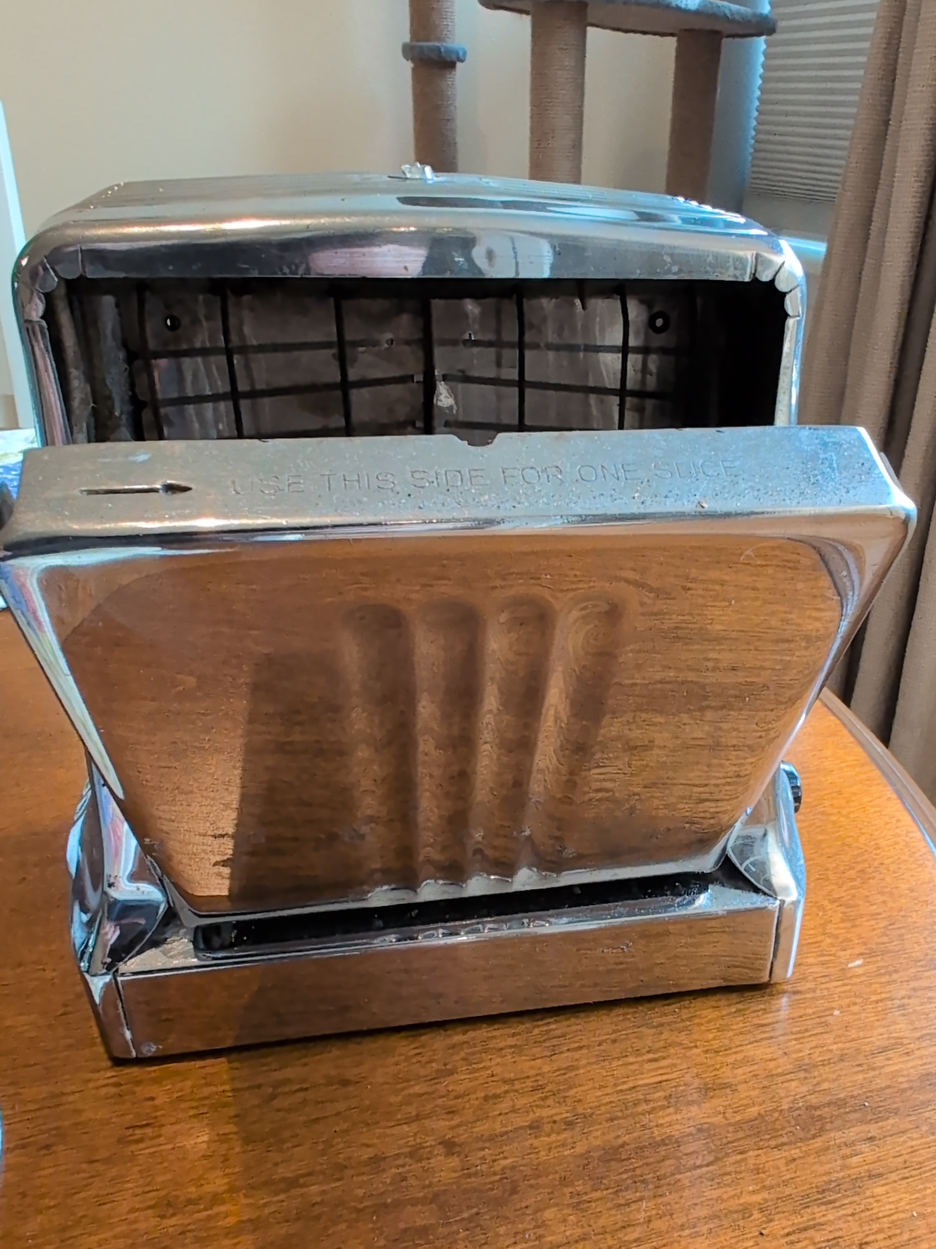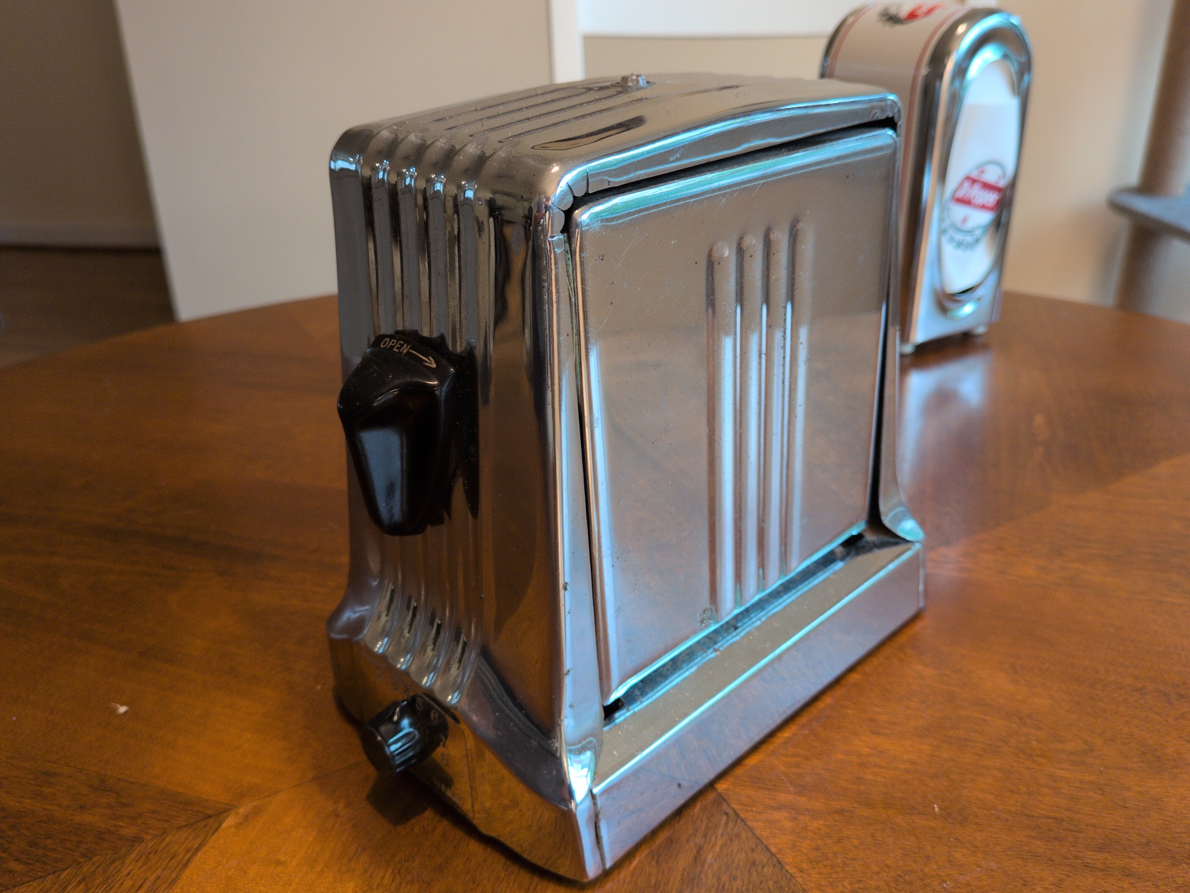 Hotpoint 129T41 This thing is SOLID. It has a bimetalic strip that controls the temperature, similar to later Sunbeam toasters, and has elements both centrally arranged and in the flip-out doors! It weighs roughly 4lbs and has a centrally located “eye” on the top.