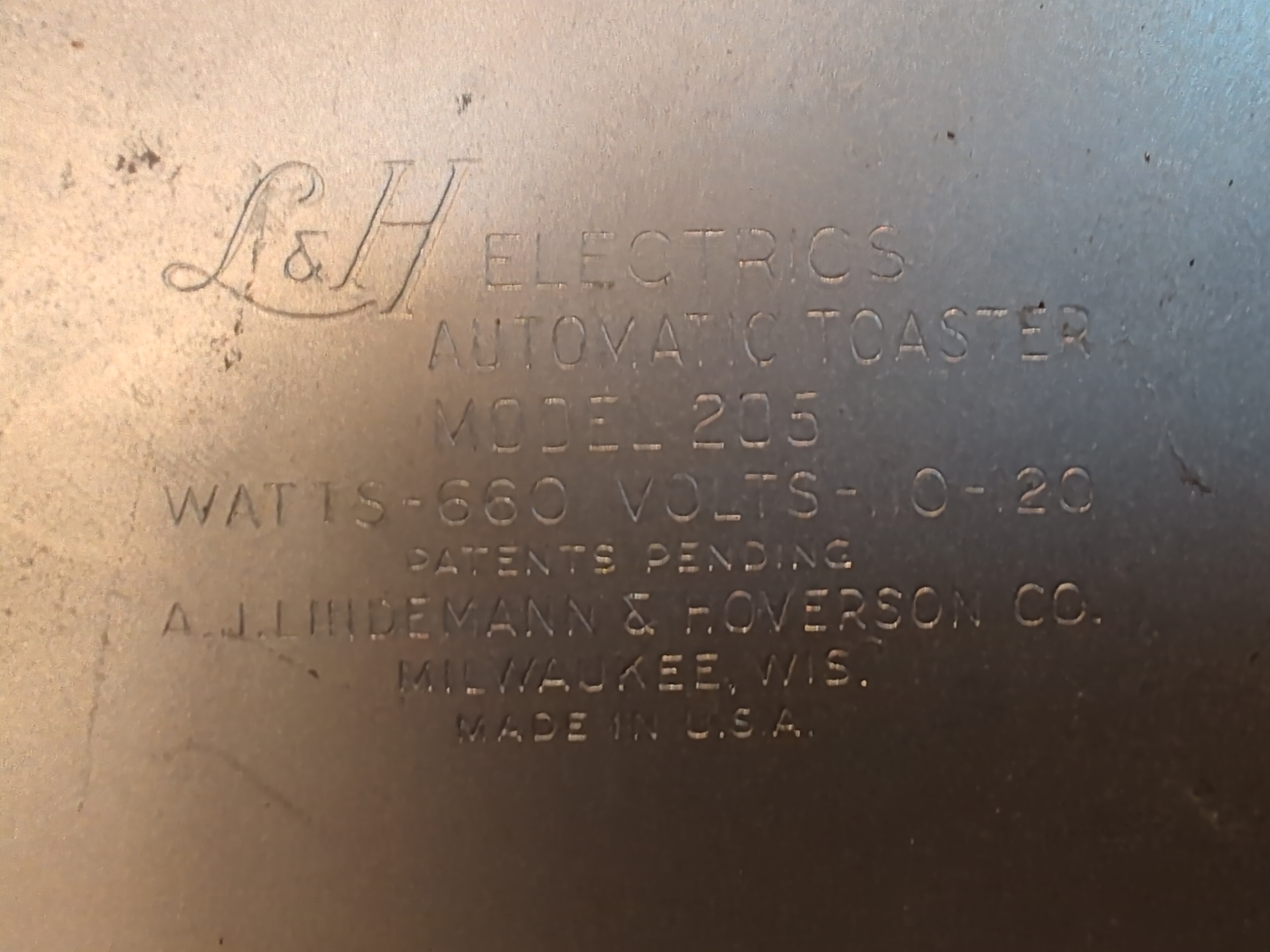 L&H 205Brand: L&H | Style: Dropper | Decade: 1920s | Year: 1920 The L&H 205 is a really unique design. It’s my favorite dropper toaster by a good margin. It’s simple, but elegent.