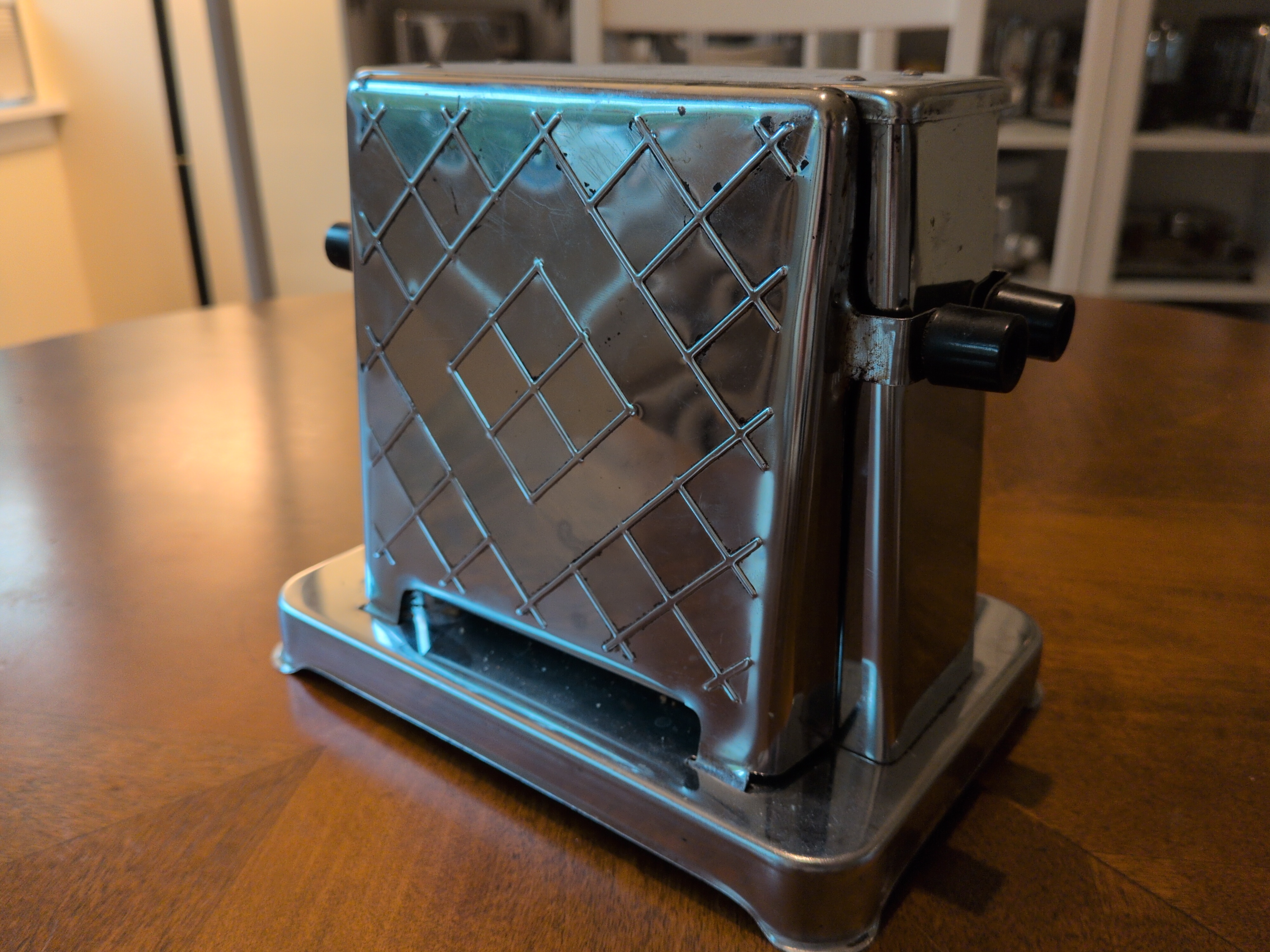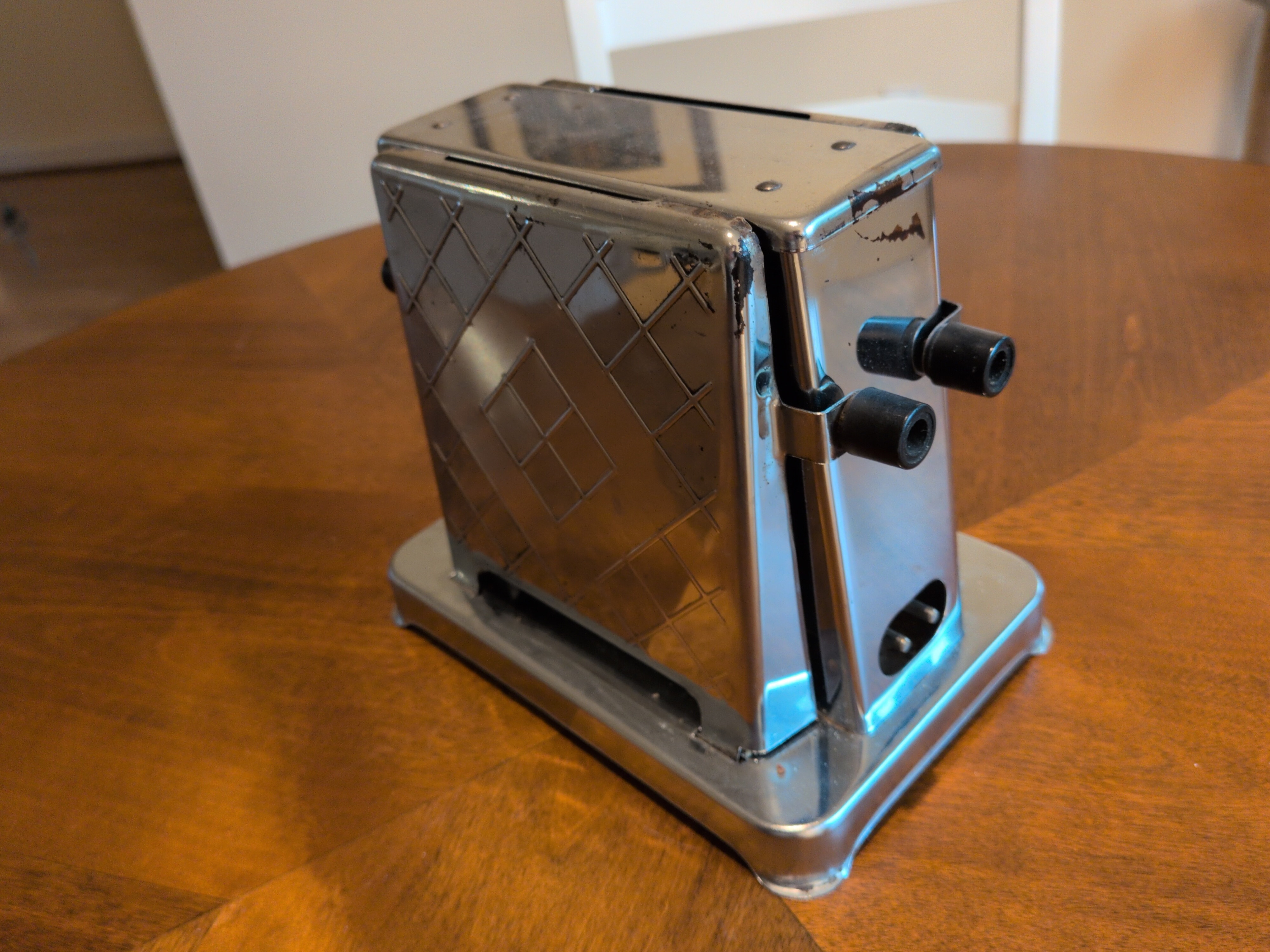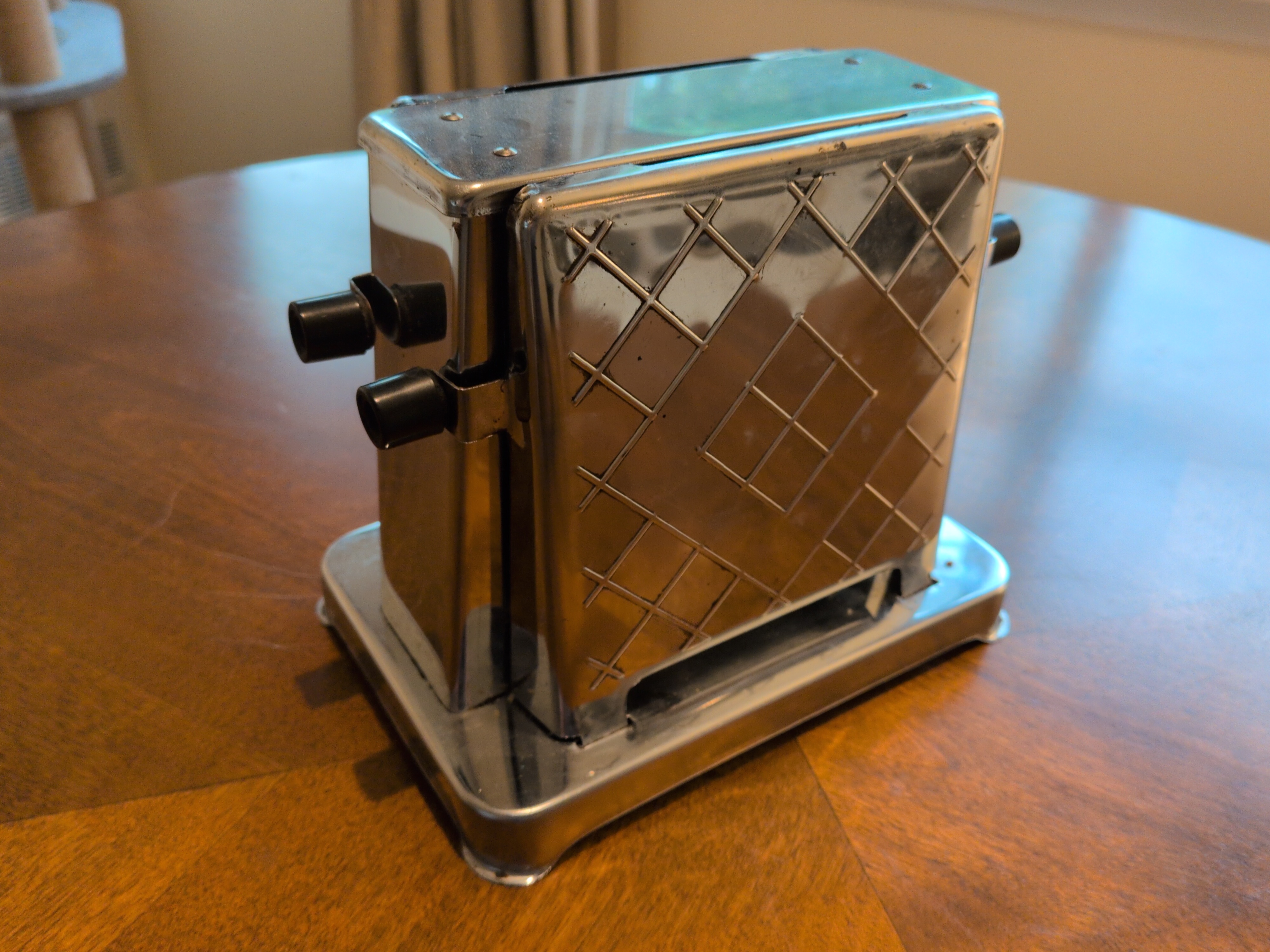 Toastess 202Brand: Toastess | Style: Flapper | Decade: 1940s | Year: 1940 This is my first toaster. Gifted to me by my dad in 2016. Thanks Dad!